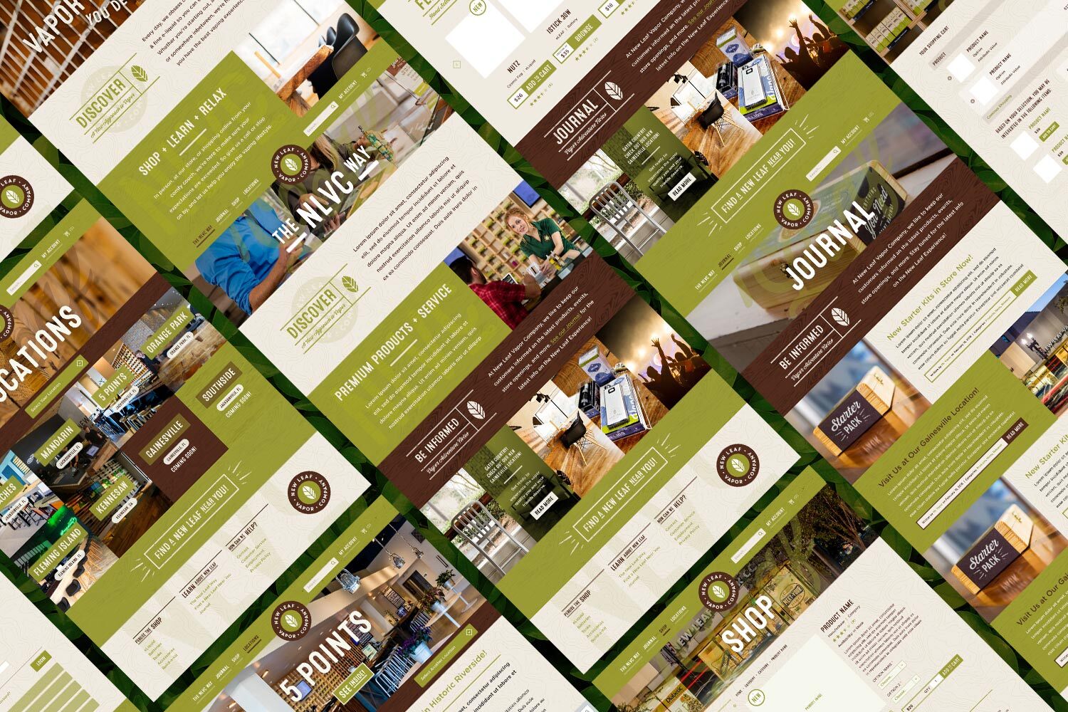 We have worked with New Leaf Vapor Co. from its initial inception, when it was no more than a concept in the founder’s mind. We have since created the brand identity, packaging design, sales and marketing materials, website design and much more over nearly a decade of workin together. Since then, the company has grown into 8 locations and a manufacturing powerhouse. New Leaf is a regional retail chain and national product wholesaler. Their brand identity as many moving parts that work together as a system to be used in a variety of scenarios including point of purchase, signage, and packaging. The brand focus was to create a welcoming and stylish experience for customers while getting brand emersion across a wide array of media.