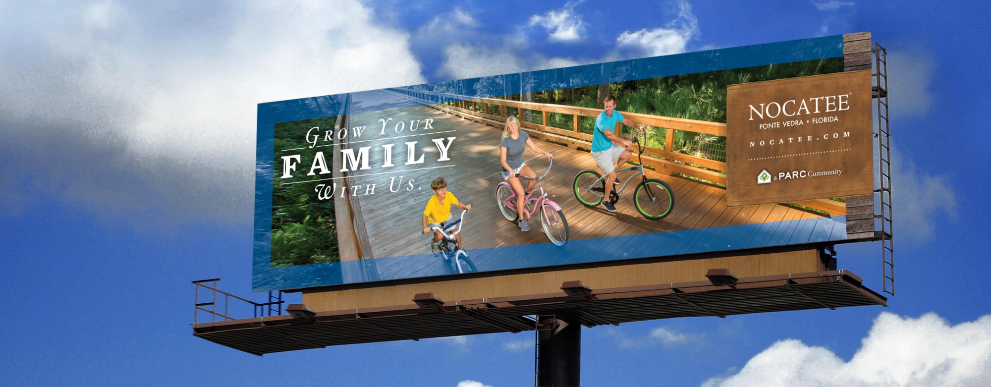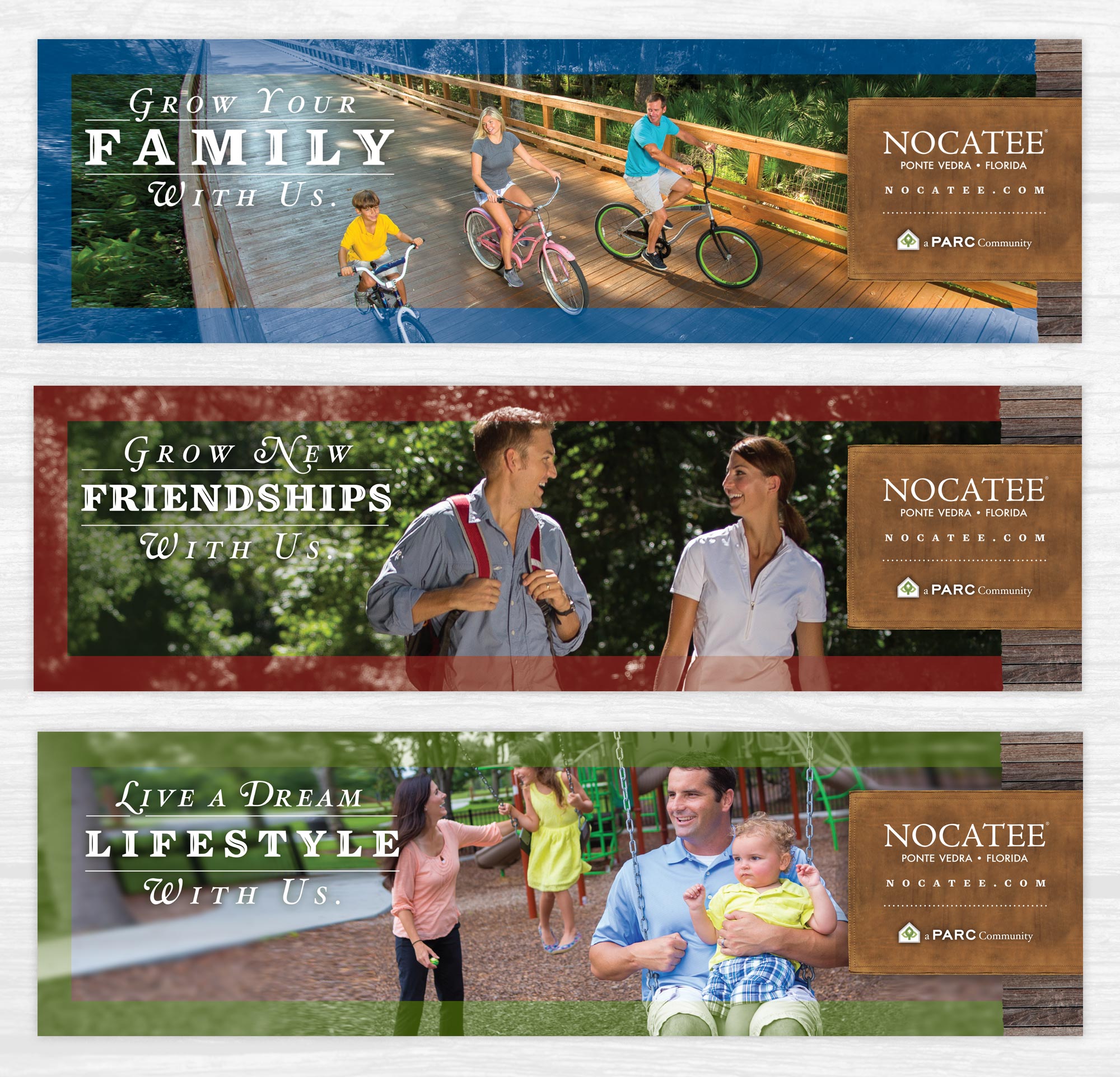 We have worked with Nocatee over the years to create a variety of design and advertising projects to promote their quickly growing community. We have had the pleasure of developing advertising campaigns, community site maps and sales collateral, environmental signage, and community logos and brand identity. Here is a bit about the Nocatee area from their website: “Nocatee is one of the best-selling master-planned communities in America, and the number one place to call home on the First Coast. Nocatee is a coastal community that blends a variety of neighborhoods with schools, parks, recreation, offices, shopping, restaurants and so much more. Located in world renowned Ponte Vedra, Florida, Nocatee is just a few minutes away from pristine beaches, golf courses, business parks and major airports in downtown Jacksonville and St. Augustine. Nocatee is more than a community, it’s a lifestyle.”