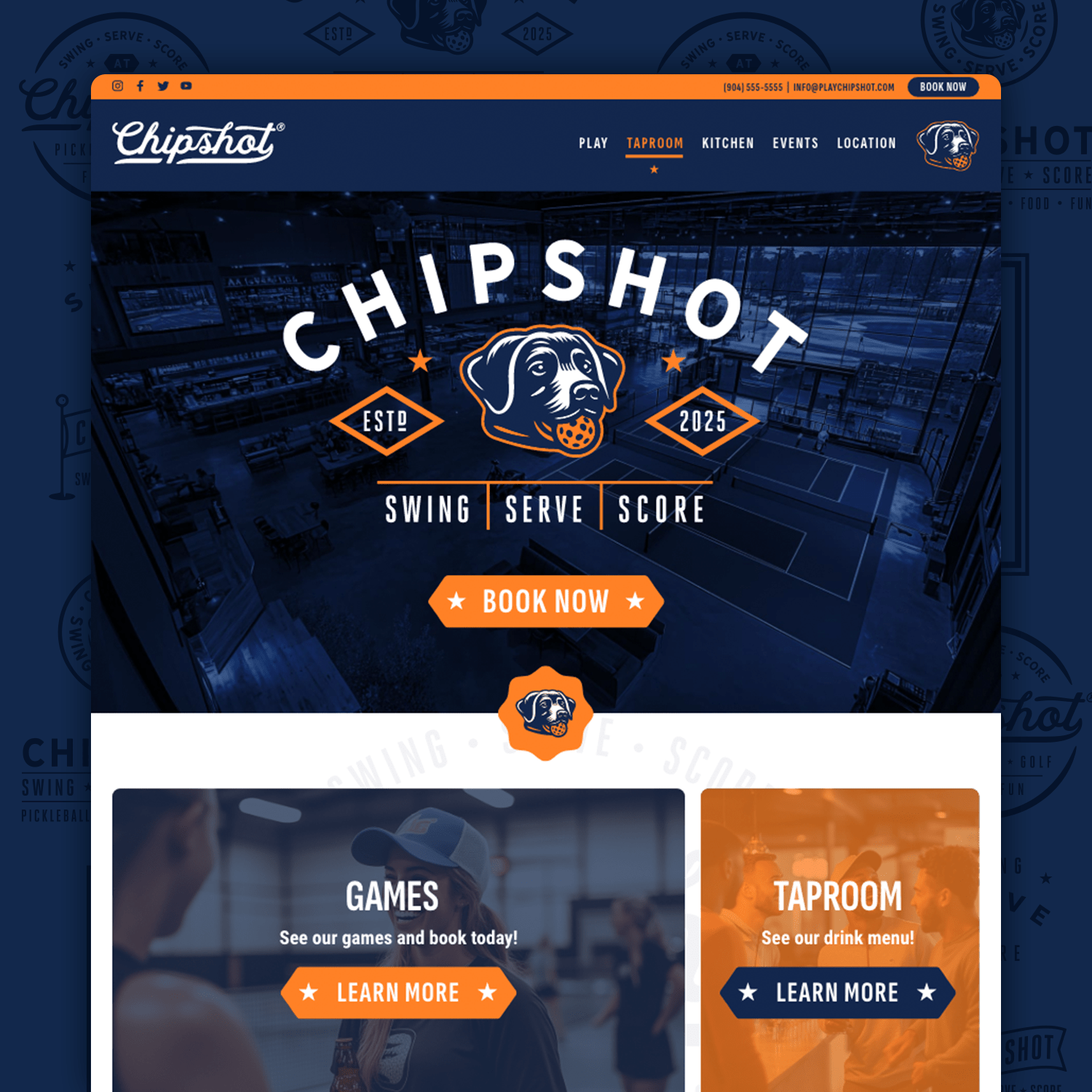 - Tagline & Messaging – Swing • Serve • Score reinforces the core activities while making it easy for audiences to remember what Chipshot is all about.