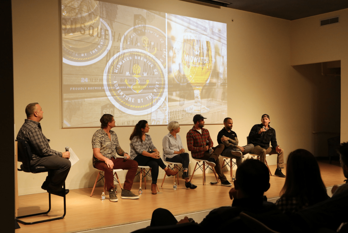 The evening kicked off with a happy hour in the MOCA lobby surrounded by craft beer label designs from the local breweries, merchandise, and special guest Katie Mitura representing the Jax Ale Trail. Eventually, the crowd moved into the auditorium for a round of giveaways and a short presentation by Advisory Board member Dave Begley, which provided context for the main event—our guest speakers!