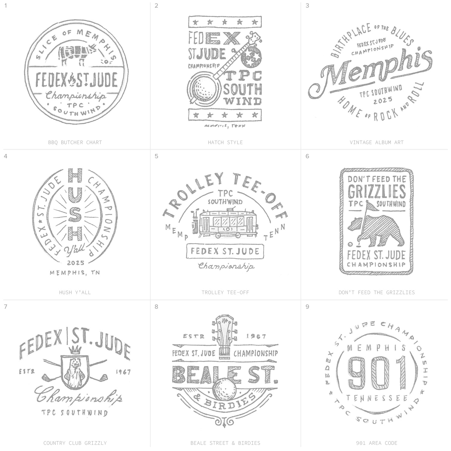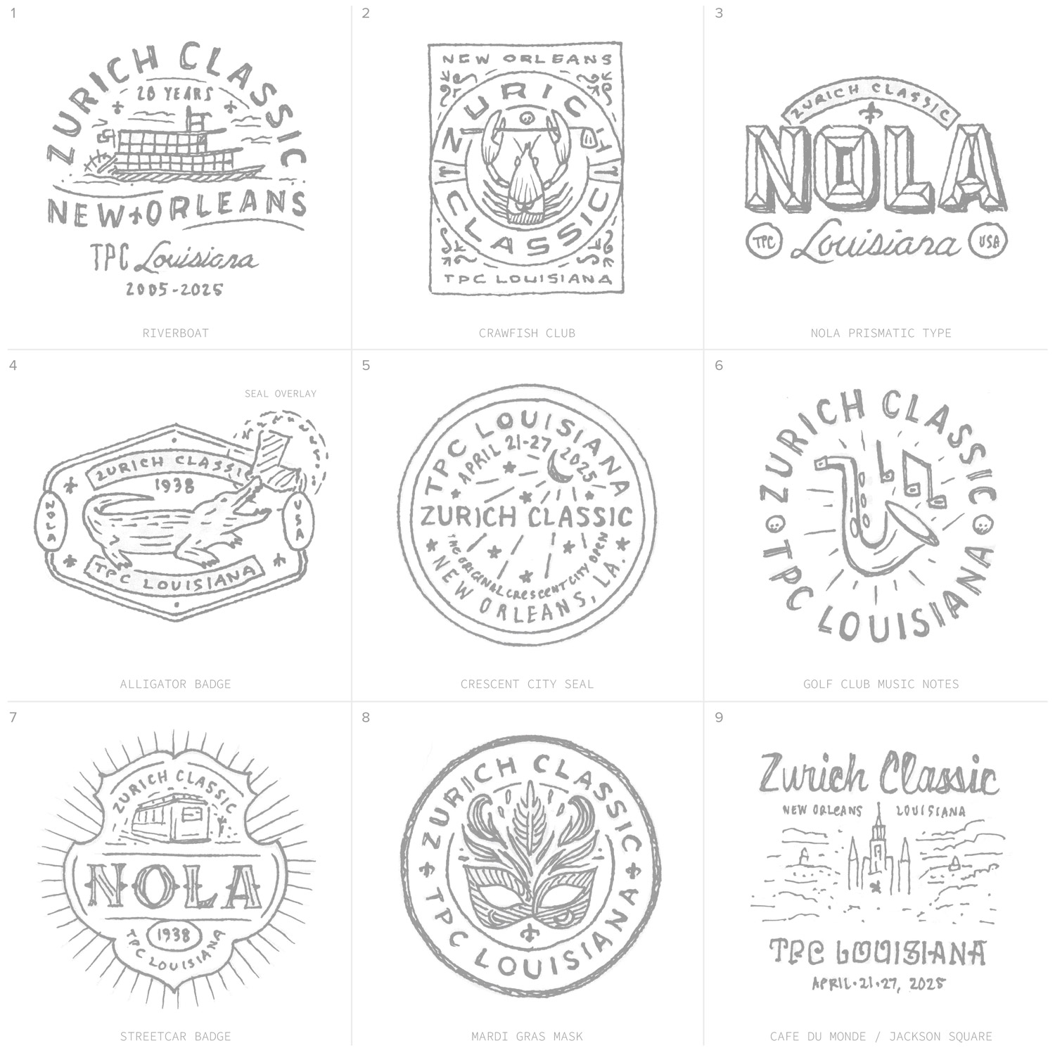 The PGA Tour is not one-size-fits-all. Every tournament has its own story, and that story informs the design work. My sketches for the 2025 season began long before I ever opened my sketchbook. They started with research.